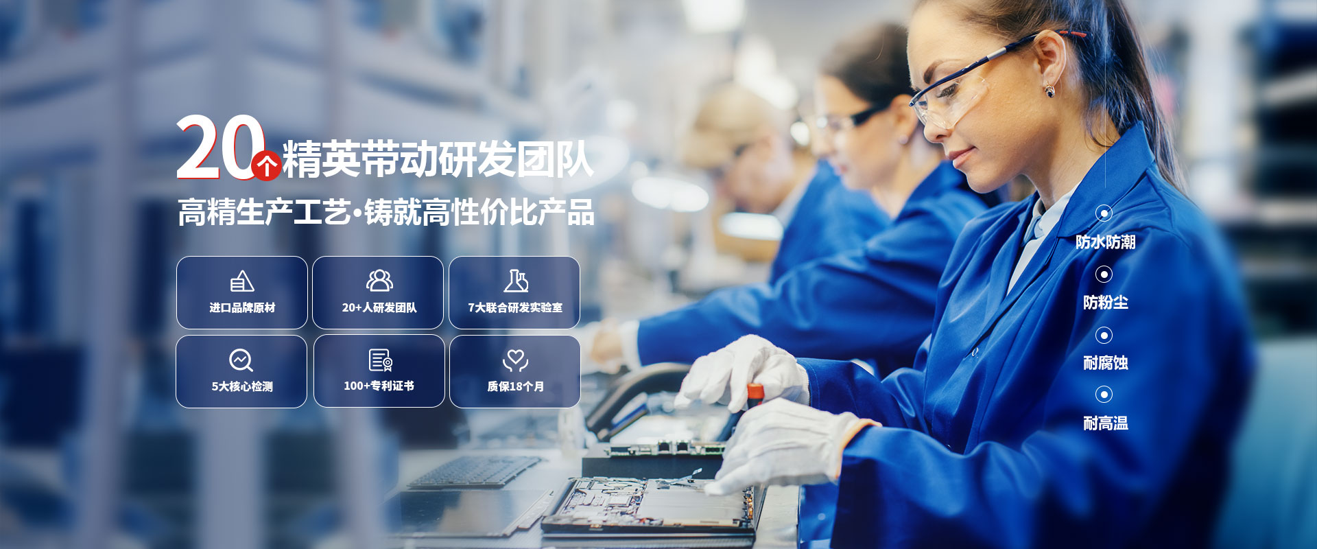 Manufacturer 擁有2萬平獨立工業(yè)園,配備自動噴涂機、單板測試臺、整機測試臺、三防漆涂覆機等全套半自動、全自動生產設備及手工組裝線,年產量可達30多萬臺。